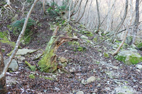 通過後に倒木を潜ります。 |