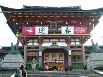 | 本堂が賑わう。ご神体は毘沙門天王。先ほどの張り子のトラが小さく見える。 |